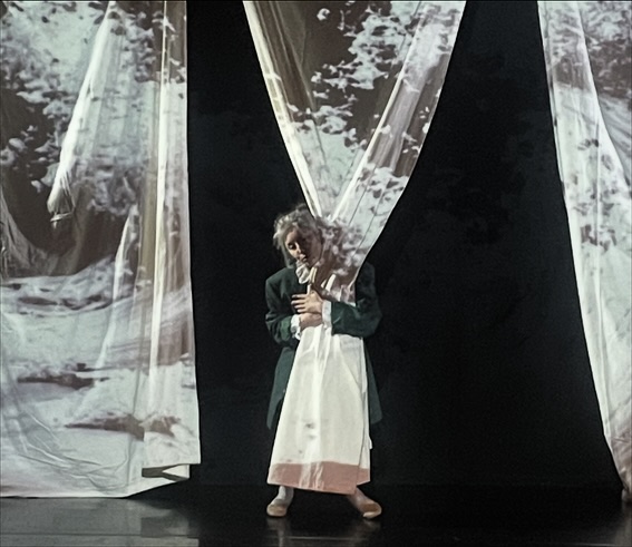 In this "sensored" interactive stage, there is no movement that doesn’t involve sound and images, so that, necessarily, all the actors’ movements on the stage lead to music and video scenes.